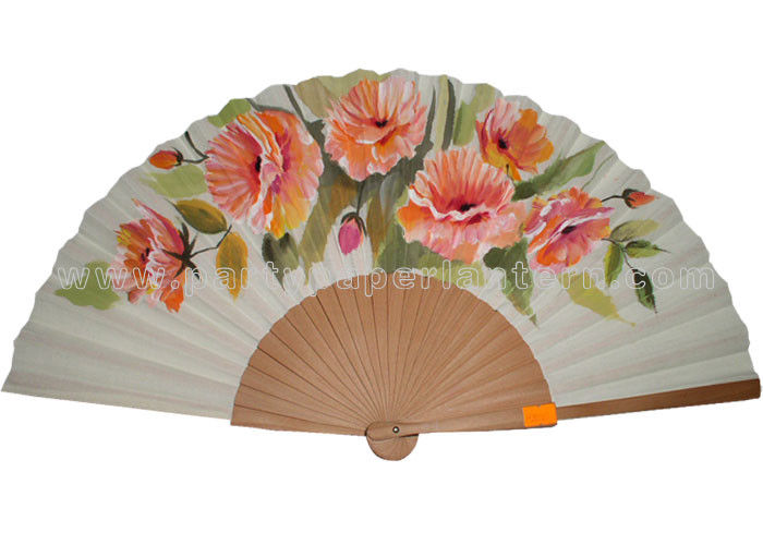 Our wooden folding hand fans in a variety of colors. Hand fans are extremely popular for parties and weddings. The framing of these wooden hand fans are made of wooden embedded with one layer of colored TC fabric. We can personalize these fans as well, please create your own design for a custom fan . We also could make the wooden fan by hand drawing design, elegant flower design by pressing and stamping machines.