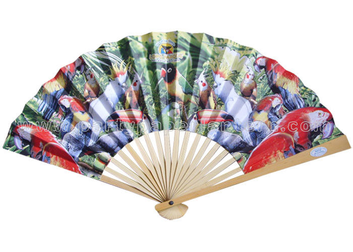 Transfer Printed Pattern of Parrot Paper Folding Fans For Promotion, Gifts, Souvenir Lifelike